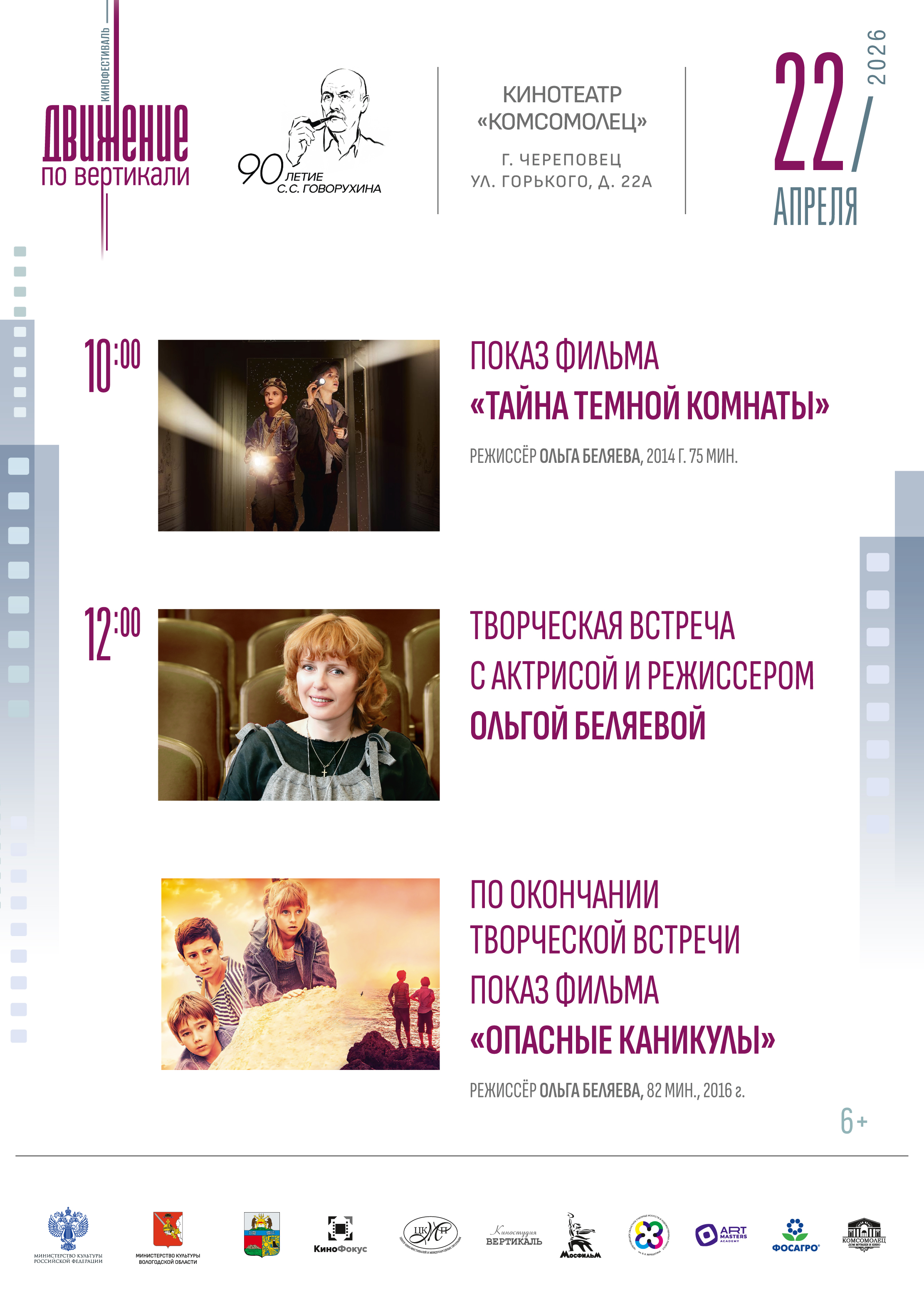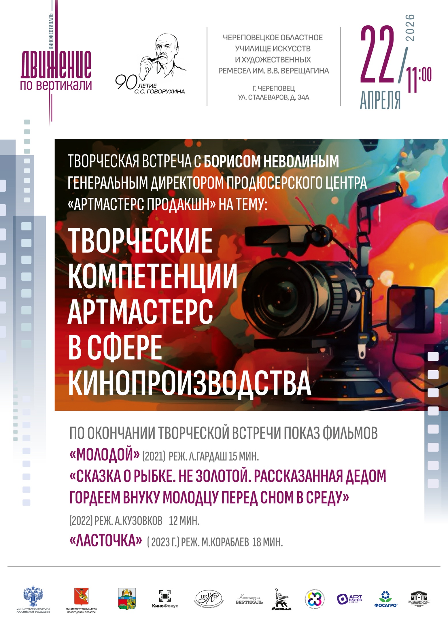 Кинофестиваль проходит при поддержке Министерства культуры Российской Федерации и Министерства культуры Вологодской области.