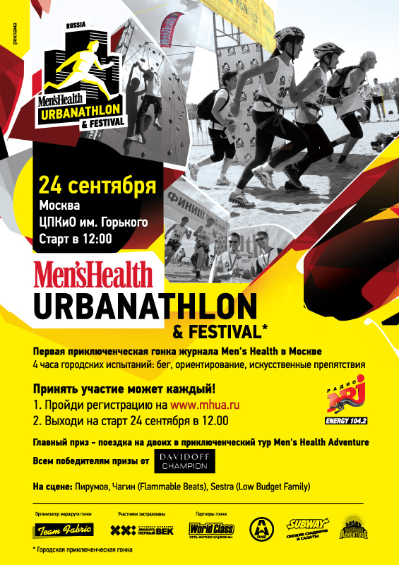 «Наш журнал – единственное практическое издание для мужчин, которые хотят чего-то добиться в жизни, проявить себя, доказать всем, и прежде всего самому себе, что ты способен на многое в любом возрасте. Именно поэтому мы организуем Men’s Health Urbanathlon – приключенческую гонку с различными испытаниями, в которой каждый участник может проявить себя в нестандартных ситуациях».