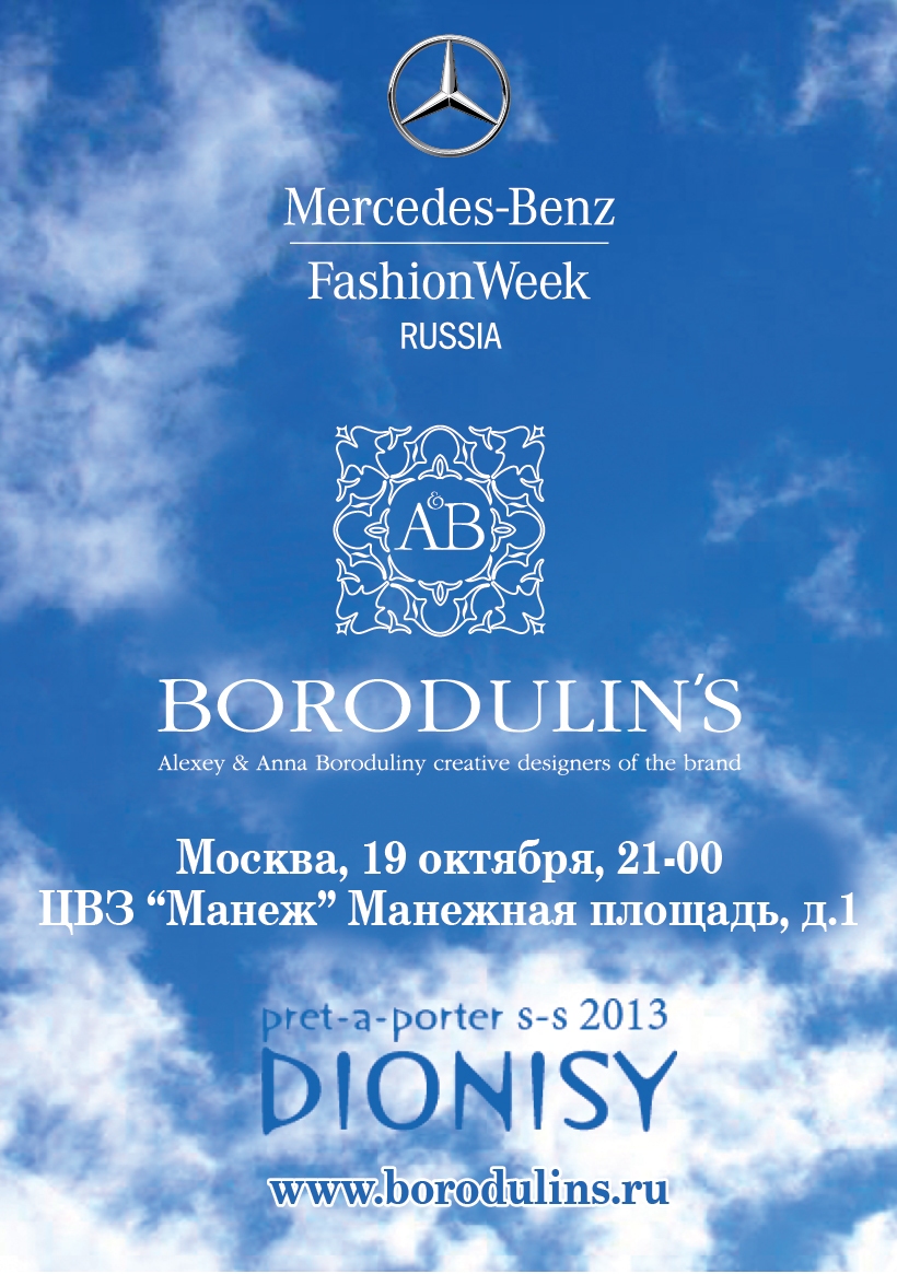 Дизайнеры анна и Алексей Бородулины,бренд BORODULIN`S, представят показ своей новой коллекции "DIONISY" на неделе моды Mercedes-Benz fashion week Russia