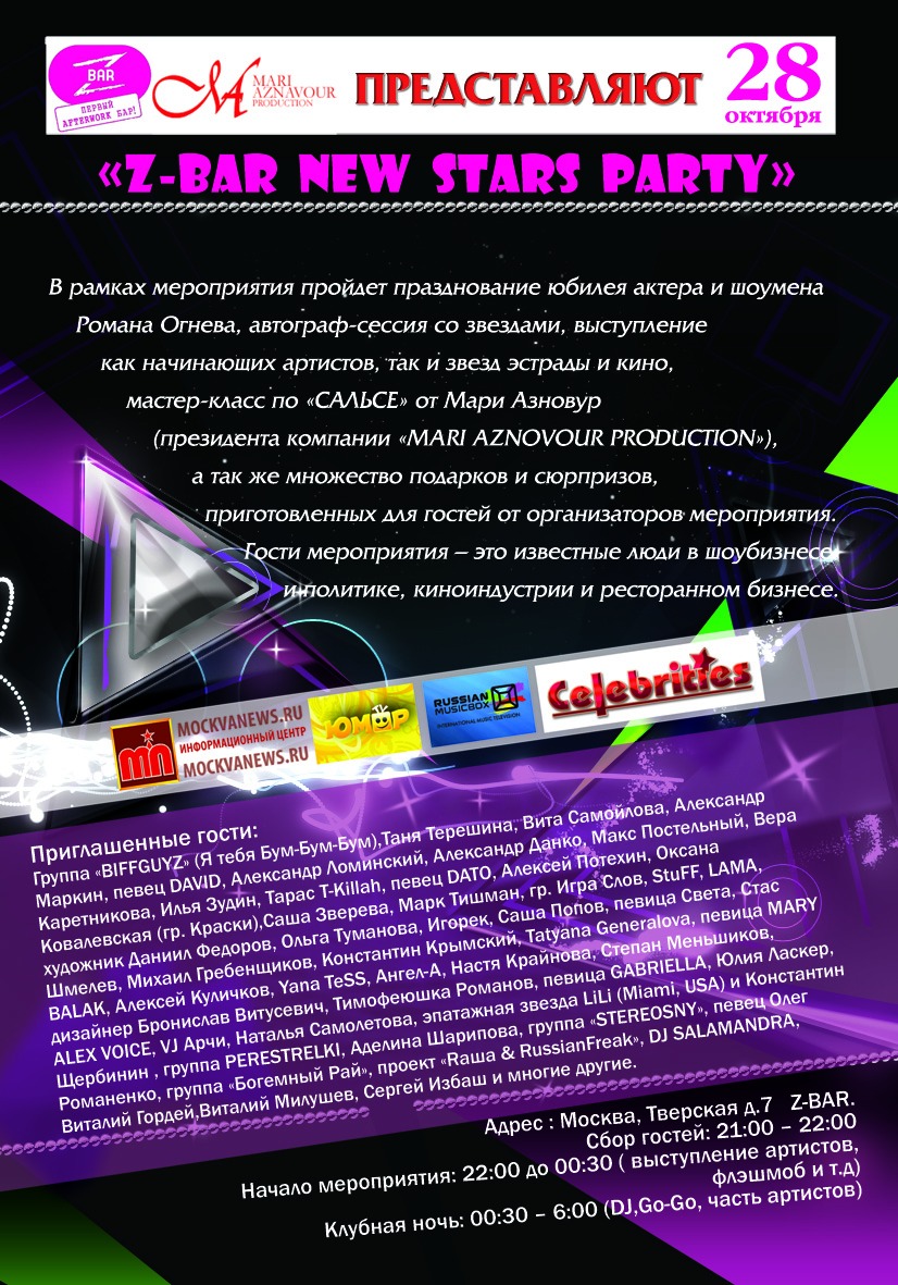 «Z-bar new stars party» - празднование юбилея актера и шоумена Романа Огнева
