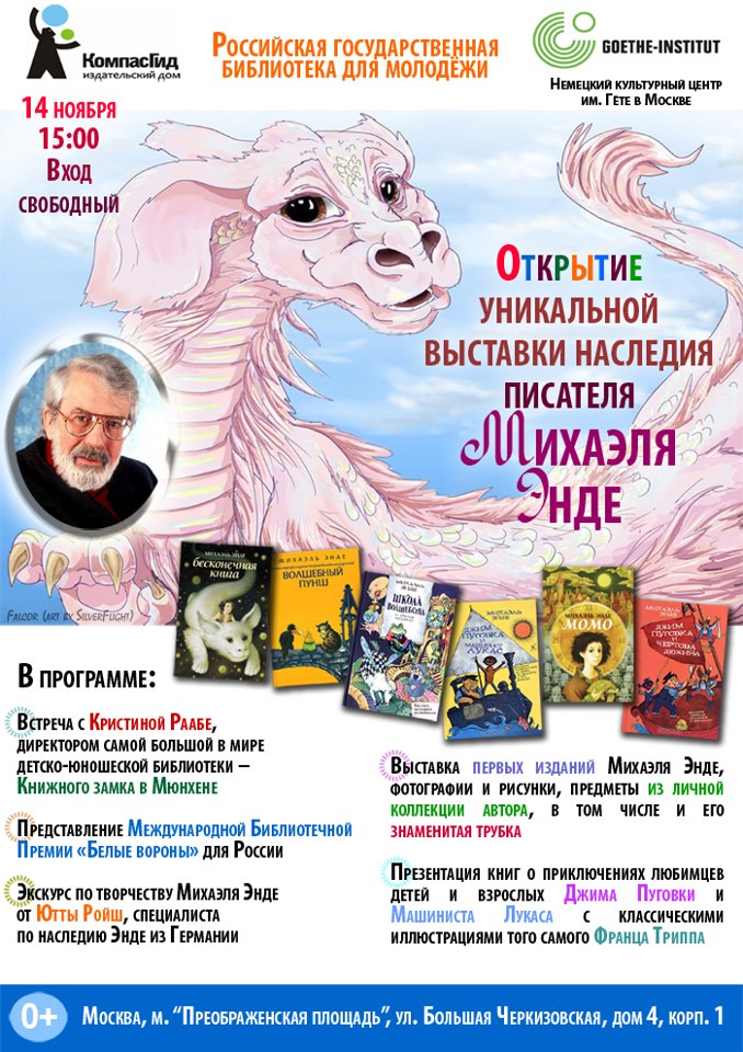 - выступление Ютты Ройш, сотрудницы Международной Мюнхенской Детской библиотеки и специалиста по творчеству Михаэля Энде, - выставка первых изданий Михаэля Энде, фотографии и рисунки, предметы из личной коллекции автора, в том числе и его знаменитая трубка.