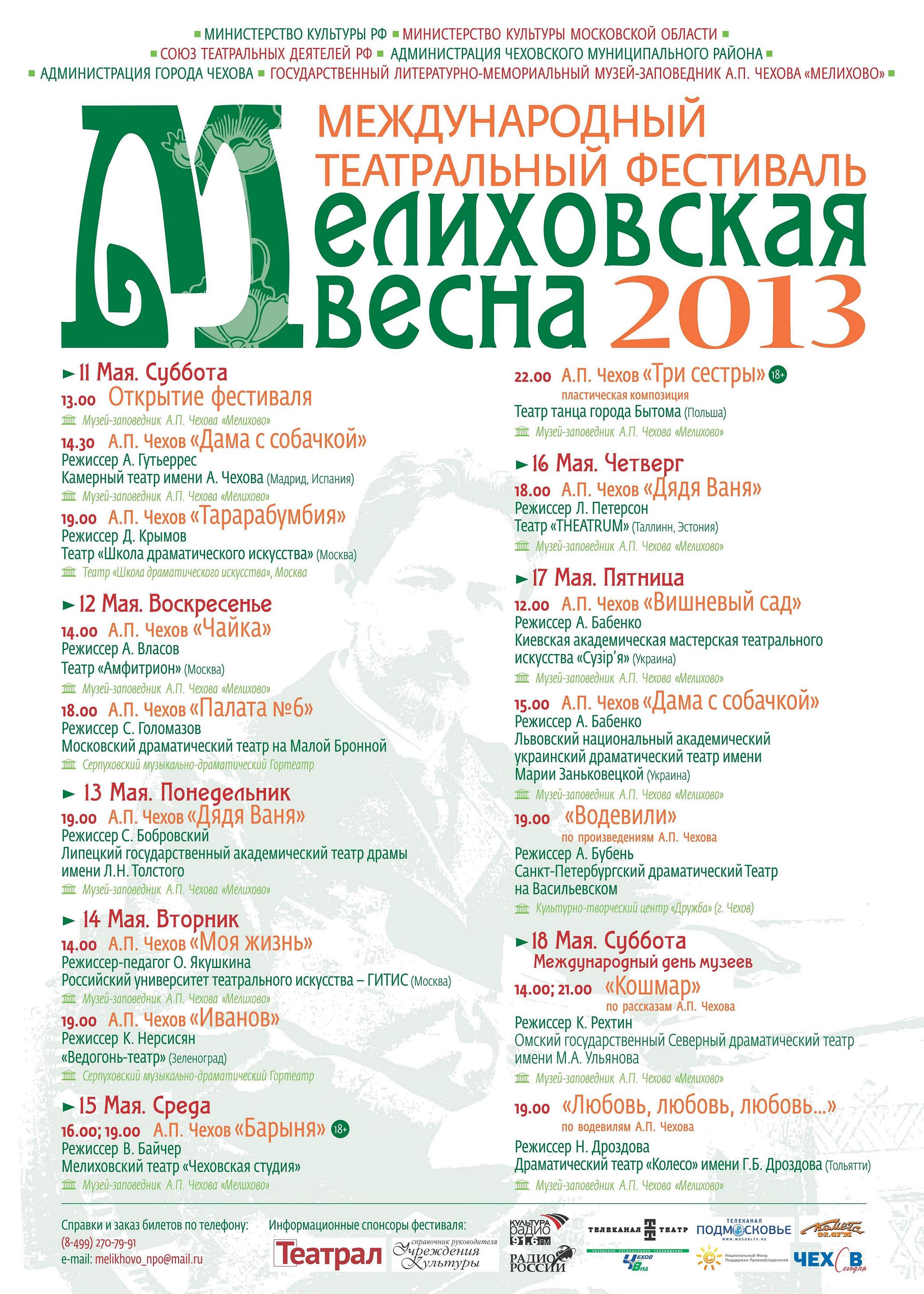 Организаторами фестиваля являются Министерство культуры РФ, Министерство культуры Московской области, Союз театральных деятелей РФ и Государственный литературно-мемориальный музей-заповедник «Мелихово».