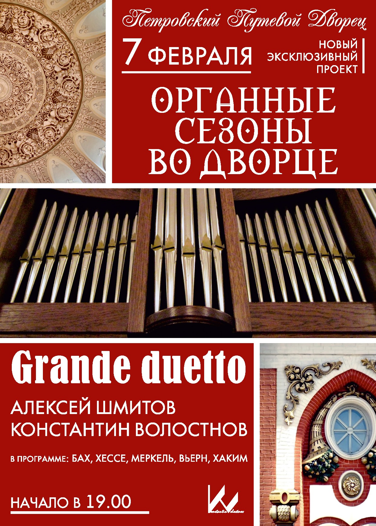 Каждый месяц московской публике будет представлена возможность послушать новую концертную программу с участием «короля инструментов» и посетить исключительные по своей красоте интерьеры Петровского путевого дворца.