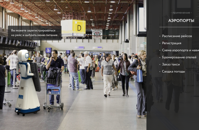 Но главной функцией робота будет мобильная регистрация на рейс. «Справа у устройства находится специальный сканер. Пассажир поднесет к нему смартфон с QR-кодом, который он получил при бронировании билета, и встроенный принтер распечатает посадочный талон», — рассказал гендиректор разработчика робота ООО «НавиРобот» (резидент «Сколкова») Игорь Кузнецов. В дальнейшем планируется, что билет можно будет распечатать с помощью паспортных данных.