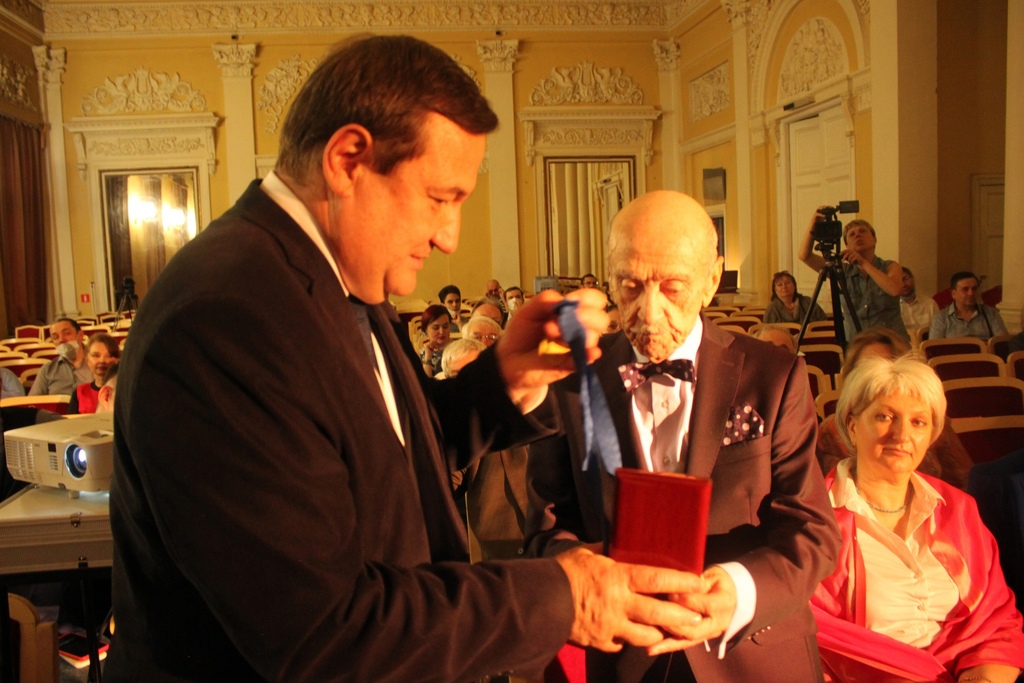 Народный артист РСФСР Владимир Татосов в этом году отметил юбилей. 10 мая легендарному петербургскому актеру исполнилось 95 лет. В далеком 1954 году на "Ленфильме" был снят фильм «Большая семья», роль в котором впервые исполнил Владимир Татосов. Дальше последовали десятки работ в кино - «Гобсек», «Шестое июля», «Крах инженера Гарина», «Салют, Мария!», «Соломенная шляпка». Всего в кинокарьере артиста более 100 киноролей. Владимир Татосов также известен как непревзойденный мастер дубляжа. Его голосом с экрана говорят многие известные актеры отечественного и зарубежного кино. 12 мая в Доме Актера имени К.С. Станиславского прошёл творческий вечер и чествование юбиляра. Поздравить Владимира Татосова пришли его друзья и коллеги, среди которых народная артистка РСФСР Татьяна Пилецкая, актриса и депутат Государственной Думы Елена Драпеко, писатель-сатирик Семен Альтов, клоун-мим Роберт Городецкий с театром "Лицедеи", актрисы театра Комедии им. Акимова Н.П. Елена Руфанова, Ирина Григорьева, актер БДТ им. Г.А. Товстоногова Сергей Лосев, актер Борис Смолкин , секретарь Союза театральных деятелей Российской Федерации, председатель Санкт-Петербургского регионального отделения СТД, народный артист РФ Сергей Паршин, а также Председателя Комитета по культуре Санкт‑Петербурга Константин Сухенко. Со сцены Дома Актера ведущими вечера были зачитаны поздравления Владимиру Татосову от Президента России Владимира Путина, губернатора Санкт-Петербурга Александра Беглова, Председателя Союза кинематографистов России, режиссера Никиты Михалкова. PITERINFO © - Андрей Кириллов