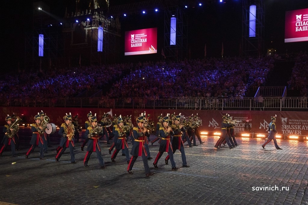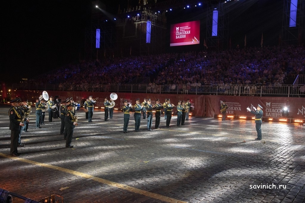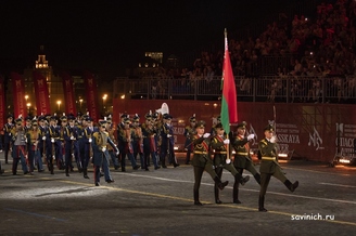Оркестр и рота Почётного караула ВС Республики Беларусь выступил 26.08.2022 на открытии XV международного военно-музыкального фестиваля “Спасская башня”. Руководитель оркестра — Начальник военно-оркестровой службы Вооружённых Сил — начальник государственного учреждения «Образцово-показательный оркестр Вооружённых Сил Республики Беларусь», полковник Игорь Хлебус. Художественный руководитель и главный дирижер оркестра — полковник Кочетков Максим Дмитриевич. Образцово-показательный оркестр Вооруженных Сил Республики Беларусь был создан в 1950 г. как оркестр штаба Белорусского военного округа и является ведущим военно-музыкальным коллективом страны. Основная задача — воспитание национального самосознания и духовности служащих, поддержание высокого морально-боевого духа и популяризация образцов мировой музыкальной культуры. Репертуар оркестра насчитывает более 500 произведений ведущих композиторов-классиков и современников. Коллектив постоянно выступает в Центральном Доме офицеров, в гарнизонных и солдатских клубах, участвует в эфирах на радио и телевидении, регулярно гастролирует по стране и за ее пределами, а также является постоянным участником военных парадов, праздничных шествий и других общественных культурных мероприятий. Особенной популярностью у поклонников белорусского военного оркестра пользуются его плац-концерты на открытом воздухе с сольным, ансамблевым и оркестровым исполнением, свойственным концертным залам.