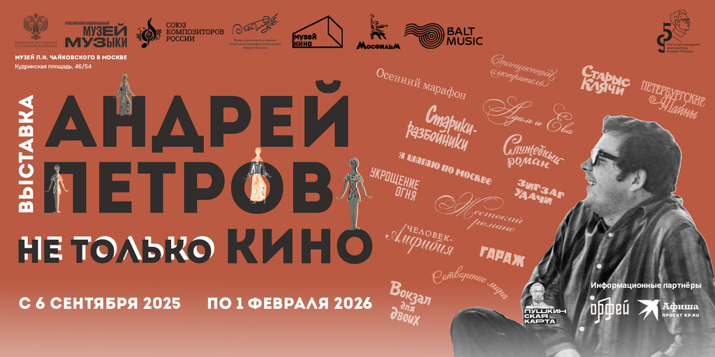 Российский национальный музей музыки (РНММ) в партнёрстве с Фондом сохранения и развития творческого наследия Андрея Петрова, Союзом композиторов России и Государственным центральным музеем кино представляет выставку к 95-летию Андрея Павловича Петрова (1930–2006) – выдающегося композитора, более 40 лет возглавлявшего Союз композиторов Ленинграда – Санкт-Петербурга, народного артиста СССР, лауреата Государственных премий СССР, почётного гражданина Санкт-Петербурга. На выставке воссоздан рабочий кабинет композитора с его личными вещами, среди них: письменный прибор, настольная лампа, рукопись оперы «Маяковский начинается», а также награды, полученные им за творческие работы и заслуги в общественной деятельности. Среди наиболее ярких экспонатов – рукописи ранних сочинений Андрея Петрова, нотные издания, живописные эскизы к оперным и балетным спектаклям художников Валерия Доррера и Энара Стенберга, фотографии, документы, программы, аудио- и видеозаписи спектаклей, плакаты и эскизы декораций к кинофильмам с музыкой Андрея Петрова: «Человек-амфибия», «Я шагаю по Москве», «Небеса обетованные», «Бедный, бедный Павел», «Забытая мелодия для флейты» и другим. Выставку открыли генеральный директор Музея музыки Михаил Брызгалов и дочь композитора Ольга Петрова, также известный композитор, художественный руководитель Фонда сохранения и развития творческого наследия Андрея Петрова. О подготовке выставки рассказала её научный куратор, главный эксперт по фондам РНММ Наталия Тартаковская. Конечно, в программу вернисажа был включён небольшой концерт. Популярные мелодии из произведений Андре Петрова исполнили его внучка Манана Гогитидзе, обладательница сильного, тембристого контральто, и молодой пианист Юрий Моисеев. Михаил Гуревич
