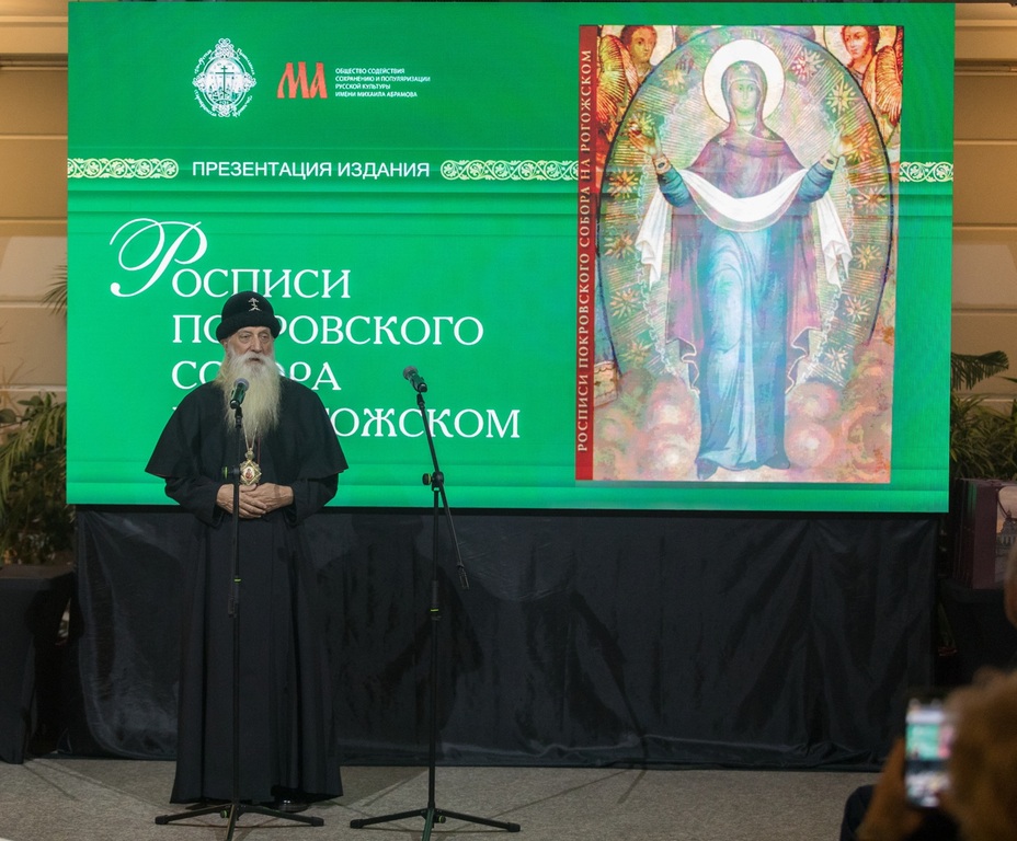 В Рогожской слободе состоялась презентация красочного альбома «Росписи Покровского собора на Рогожском» — первой публикации выдающегося памятника русской монументальной живописи конца XVIII — начала ХIХ века, прежде недоступного для широкой общественности. Организаторами выступили: Русская Православная старообрядческая Церковь и Общество содействия сохранению и популяризации русской культуры имени Михаила Абрамова. На торжественной церемонии присутствовали: предстоятель РПСЦ митрополит Корнилий, основатель Общества содействия сохранению и популяризации русской культуры имени Михаила Абрамова — Светлана Абрамова, настоятель Покровского кафедрального собора на Рогожском протоиерей Алексей Михеев, сенатор РФ, первый заместитель председателя комитета Совета Федерации по бюджету и финансовым рынкам Сергей Рябухин, заместитель руководителя Департамента национальной политики и межрегиональных связей города Москвы Константин Блаженов, ректор Российской академии живописи, ваяния и зодчества Иван Глазунов, создатели альбома «Росписи Покровского собора на Рогожском» и другие духовные и официальные лица. Все права на представленные фотоматериалы принадлежат Обществу им. М. Абрамова. Фотосъемка Сергея Захарченко.