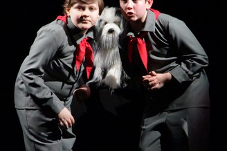 В репертуаре Московского Театра русской драмы появился ещё один детский спектакль – «Дружок». Режиссер Юлия Щепенко поставила пьесу Юлии Авериной – интерпретацию рассказов Николая Носова. Основа сюжета – приключения мальчишек Мишки (Иван Коженков) и Коли (Никита Демидов). В центре внимания также песик Дружок. Игрушечная собака оживает в руках мастера-кукловода (Екатерина Аверина). Дети-актеры создают яркие образы, им помогают заслуженная артистка РФ Валерия Полякова (смешная старушка), Анастасия Вурста (правильная гражданка), Антонина Королёва (тётя Наташа). Ирина Обложнова и Ирина Винокурова – строгие мамы главных героев. На сцене предметы интерьера и вещи советской эпохи. Однако спектакль получился актуальный. Зрители понимают проблемы, о которых писал Носов в середине 20 века. Премьера спектакля прошла успешно, судя по реакции публики. Фото Театра русской драмы