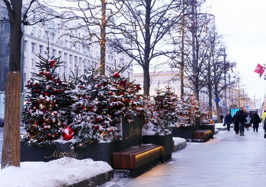 К празднованию Нового года и Рождеству центральные улицы Москвы превращаются в сказку. Причём на каждой улице своя сказка и для каждой — своя новогодняя инсталляция. Лучшие московские ландшафтные дизайнеры соревновались в выдумке и оригинальности. Невозможно определить у какой из команд получилось лучше — все прекрасны. В этом году новогодних площадок в столице так много, что все сложно обойти. Но побывать на Тверской улице и на ёлочном базаре Тверской площади у памятника Юрию Долгорукому, в Камергерском переулке и на Кузнецком мосту, на ул. Петровке перед ЦУМом, и на площади перед институтом Склифосовского — просто необходимо, чтобы убедиться: Москва — самый красивый город в мире.