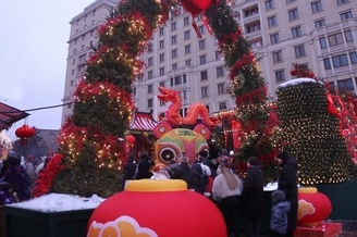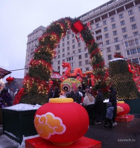 Вашему вниманию - фоторепортаж о том, как была украшена Москва во время празднования китайского Нового года.