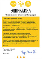 30 июля 2016 года Пастриарх РПЦ Пюра Паста III издал Энциклику "О назначении четвертого Пастриарха". Новым Пастриархом РПЦ стал Сама Паста IV (Михаил Самин, член Священного Дуршлага). Пастриарх Пюра Паста III перешел в статус Пастриарха на покое.