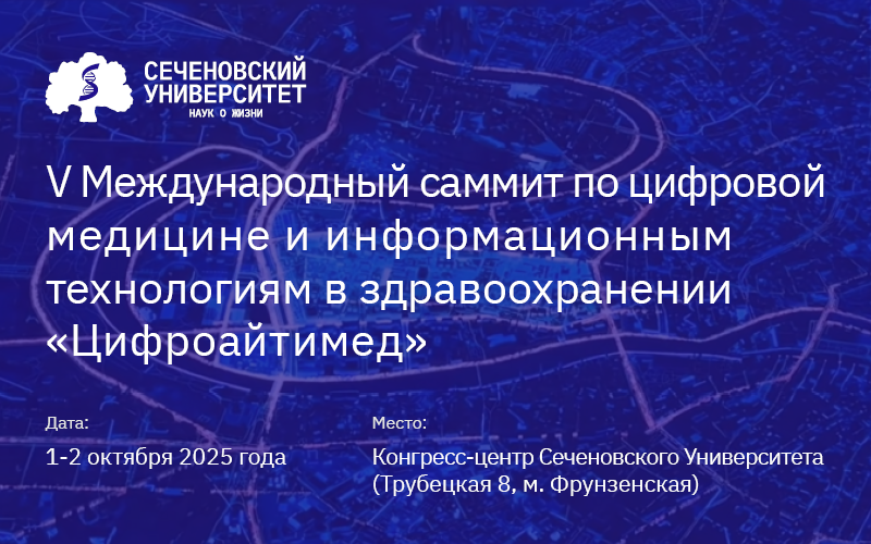 1–2 октября 2025 года состоится V Международный саммит по цифровой медицине и информационным технологиям в здравоохранении «Цифроайтимед»