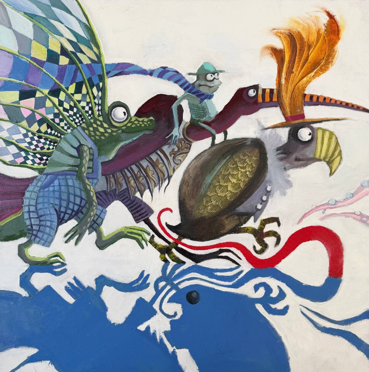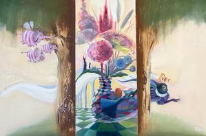 Выставка создана по мотивам иллюстраций Екатерины Ващинской к новому изданию «Алисы в стране Чудес», вышедшему в 2025 году. Здесь привычные персонажи оказываются внутри мира, где пространство напоминает театральную сцену, шахматную доску или фантастический сад. Художница соединяет элементы декоративной живописи, книжной иллюстрации и фантастического реализма.